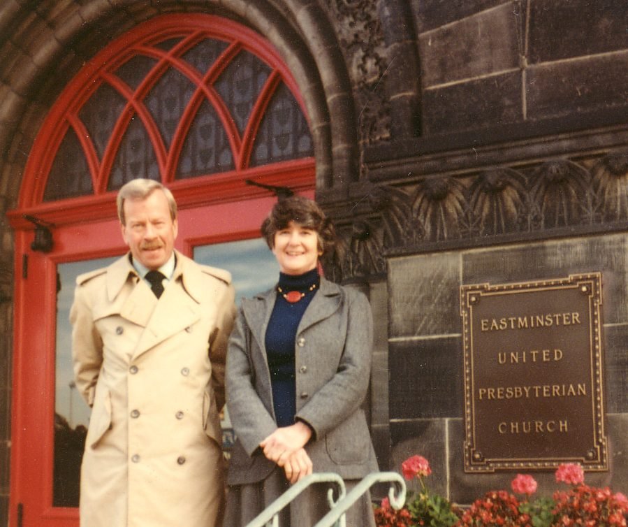Alice and Bob McCutcheon in front of Eastminster U.P. Church, date unknown